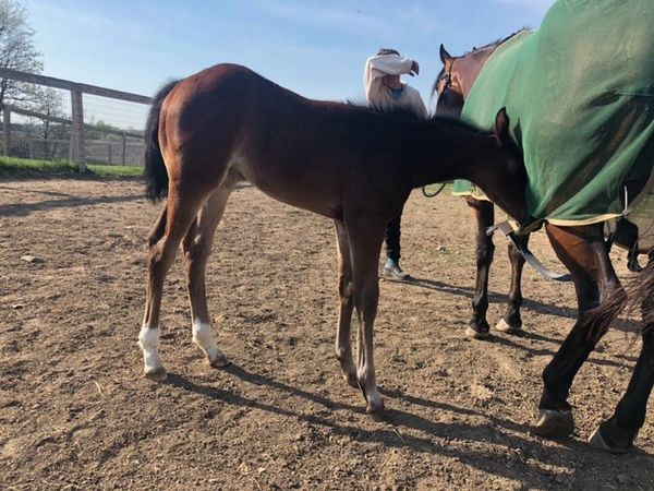 This filly is simply stunning and has a big future ahead of her. She is bred in the purple, has a gorgeous profile, has the movement and disposition to be a big time show mare.